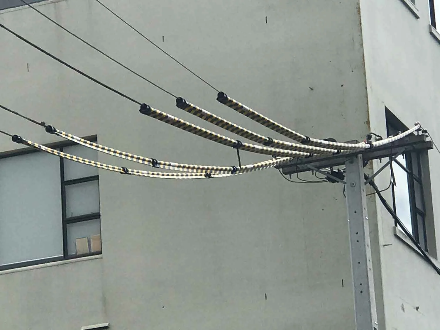 Sparkz Electrical provide a comprehensive overhead sleeve installation service. Otherwise known as Tiger Tails or Line Wraps, overhead sleeves provide a highly effective visual aid that helps prevent electrical accidents on residential and commercial sites.